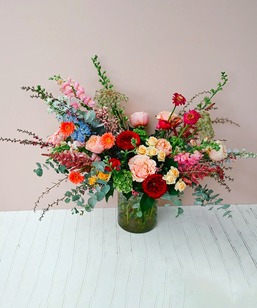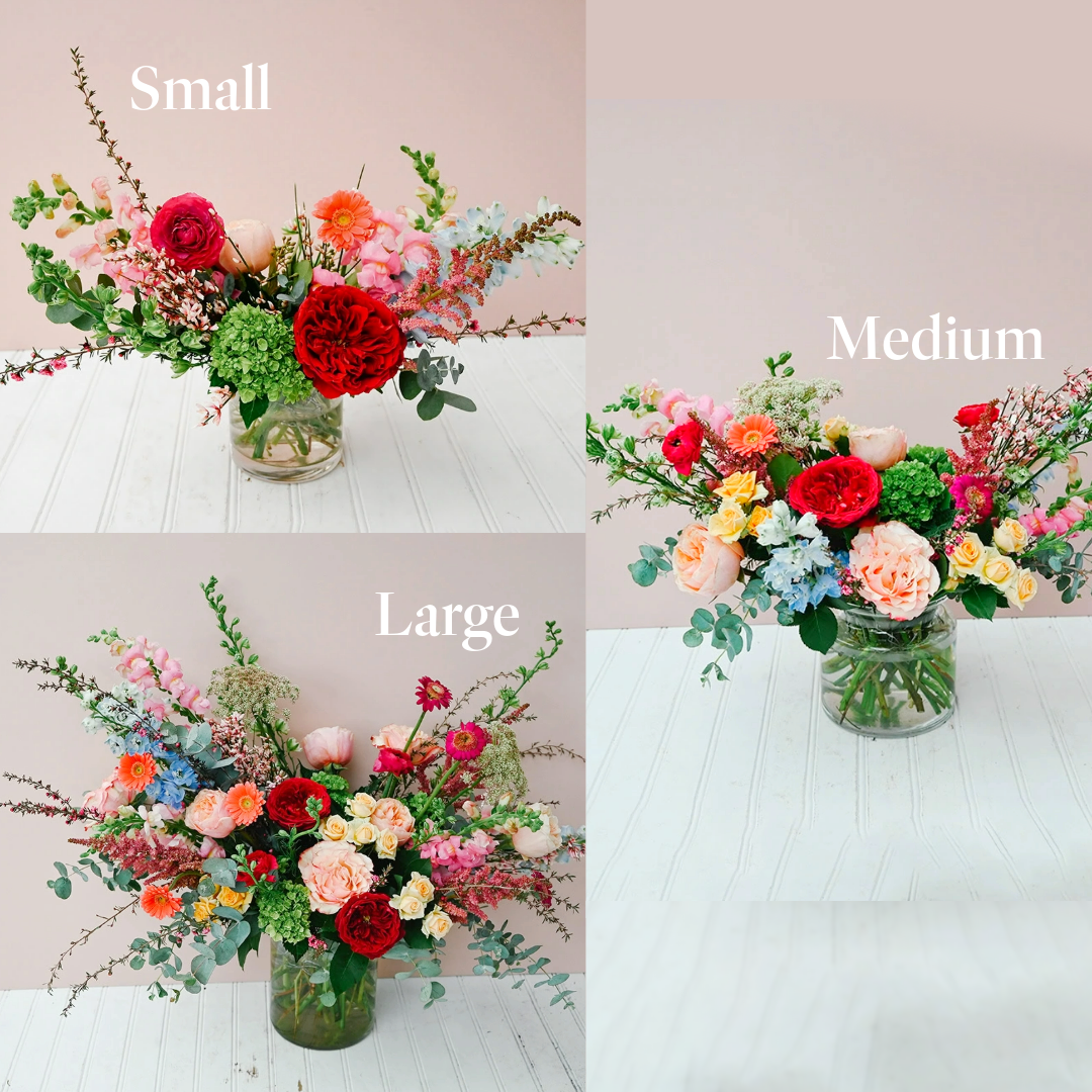 Let our designers work their magic! Designer’s Choice features a custom arrangement created with the freshest seasonal flowers available that day. Every bouquet is unique and designed in our signature style. The images shown are examples of size and style—flowers and colors will vary depending on what’s blooming and looking its best.