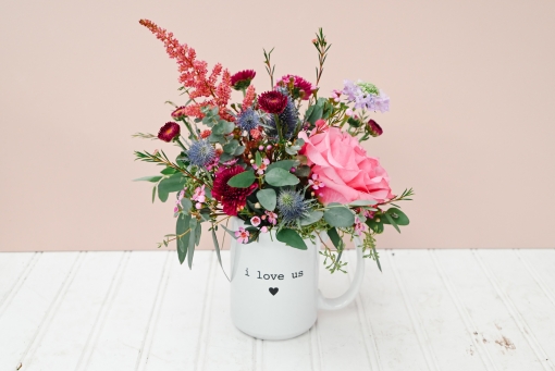 We filled this adorable “I Love Us” mug with fresh blooms to make mornings brighter and hearts fuller.